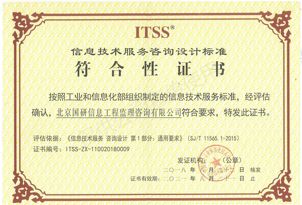 國(guó)研咨詢喜獲ITSS信息技術(shù)服務(wù)咨詢?cè)O(shè)計(jì)標(biāo)準(zhǔn)符合性證書